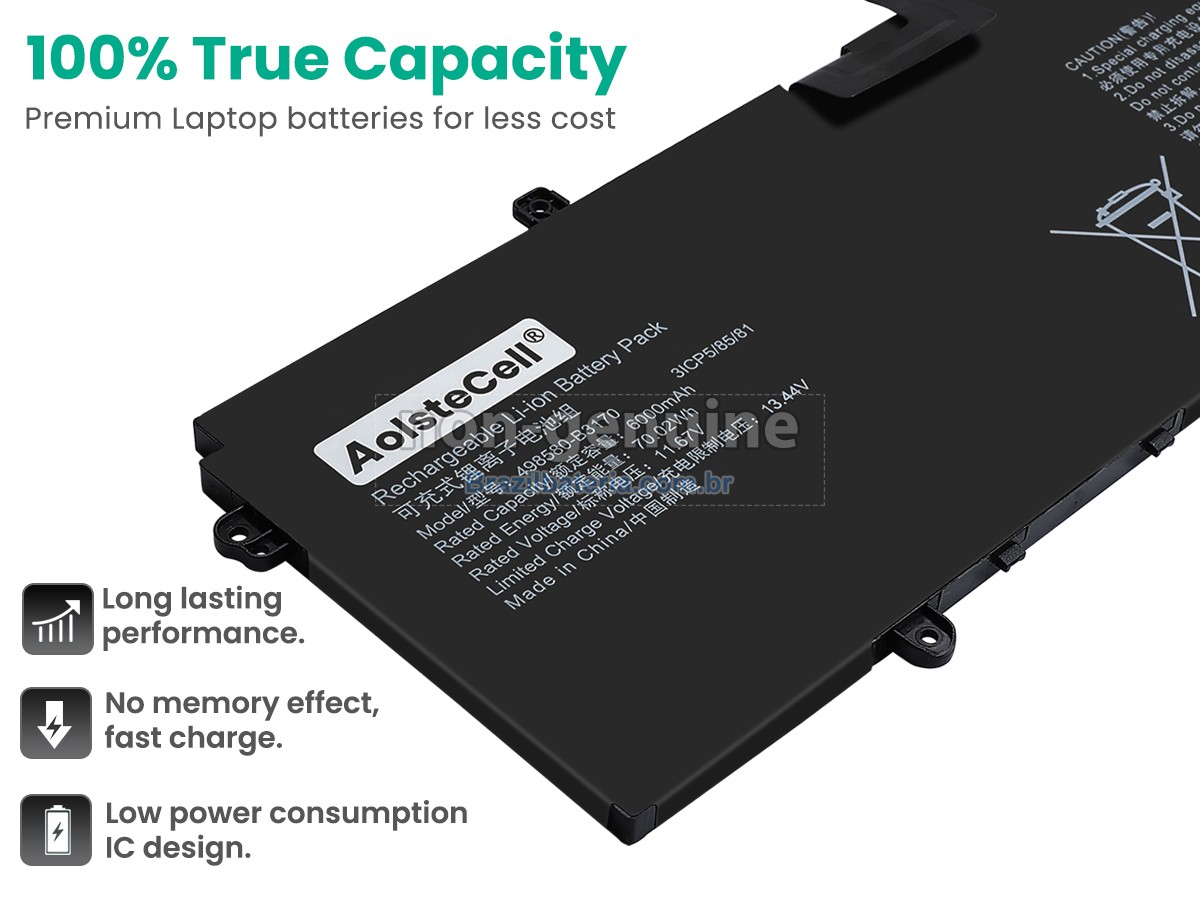 Brazilbateria adota o mesmo chip de gestão de fonte de alimentação TI importado dos Estados Unidos que o original, para obter compatibilidade, velocidade de inicialização, velocidade de Internet e taxa de carregamento consistentes com o original. Usa o material de proteção ambiental da carcaça externa ABS + PS resistente à alta temperatura e ao desgaste, com alta resistência e melhor tenacidade. O conector de fonte de alimentação e os grampos de parafuso de cada bateria AolsteCell 498580-B3170 são testados em máquinas reais para garantir uma compatibilidade perfeita e um ajuste perfeito.