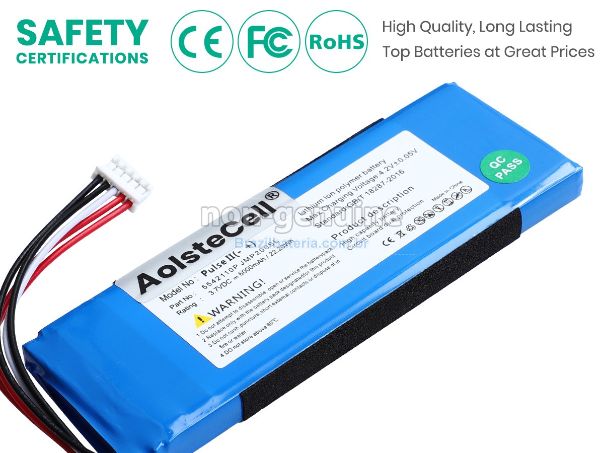 Brazilbateria adota o mesmo chip de gestão de fonte de alimentação TI importado dos Estados Unidos que o original, para obter compatibilidade, velocidade de inicialização, velocidade de Internet e taxa de carregamento consistentes com o original. Usa o material de proteção ambiental da carcaça externa ABS + PS resistente à alta temperatura e ao desgaste, com alta resistência e melhor tenacidade. O conector de fonte de alimentação e os grampos de parafuso de cada bateria JBL PULSE 3 são testados em máquinas reais para garantir uma compatibilidade perfeita e um ajuste perfeito.