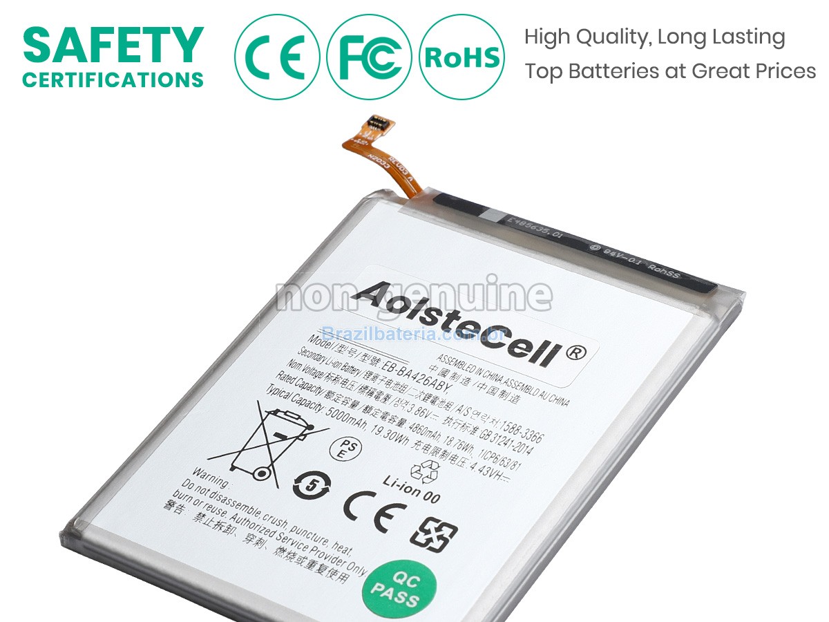 Brazilbateria adota o mesmo chip de gestão de fonte de alimentação TI importado dos Estados Unidos que o original, para obter compatibilidade, velocidade de inicialização, velocidade de Internet e taxa de carregamento consistentes com o original. Usa o material de proteção ambiental da carcaça externa ABS + PS resistente à alta temperatura e ao desgaste, com alta resistência e melhor tenacidade. O conector de fonte de alimentação e os grampos de parafuso de cada bateria Samsung EB-BA426ABY são testados em máquinas reais para garantir uma compatibilidade perfeita e um ajuste perfeito.