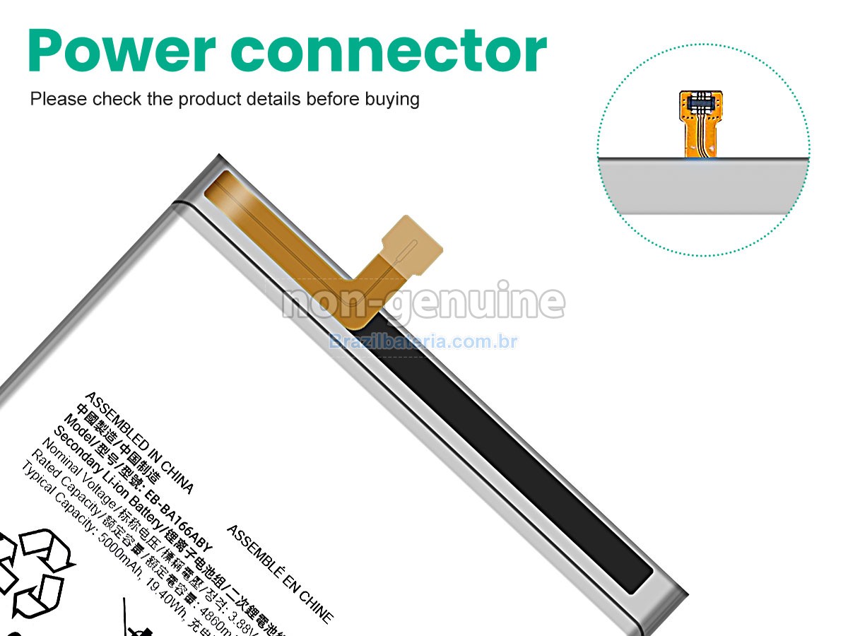 Brazilbateria adota o mesmo chip de gestão de fonte de alimentação TI importado dos Estados Unidos que o original, para obter compatibilidade, velocidade de inicialização, velocidade de Internet e taxa de carregamento consistentes com o original. Usa o material de proteção ambiental da carcaça externa ABS + PS resistente à alta temperatura e ao desgaste, com alta resistência e melhor tenacidade. O conector de fonte de alimentação e os grampos de parafuso de cada bateria Samsung GALAXY A16 5G são testados em máquinas reais para garantir uma compatibilidade perfeita e um ajuste perfeito.